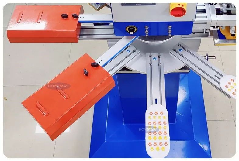 به عنوان تولید کننده حرفه ای در چین، مایلیم دستگاه چاپ روی صفحه جوراب HOYSTAR 2 Colors را با سرعت بالا در اختیار شما قرار دهیم. دستگاه های ما از کنترل صفحه نمایش لمسی و PLC استفاده می کنند و عمدتاً برای چاپ انواع مختلف جوراب استفاده می شوند. این دستگاه قابلیت چاپ روی کف و پاشنه جوراب را دارد و مجهز به اجاق خشک کن است که می تواند سیلیکون و جوهر را به خوبی خشک کند.