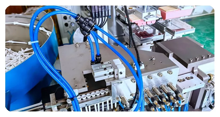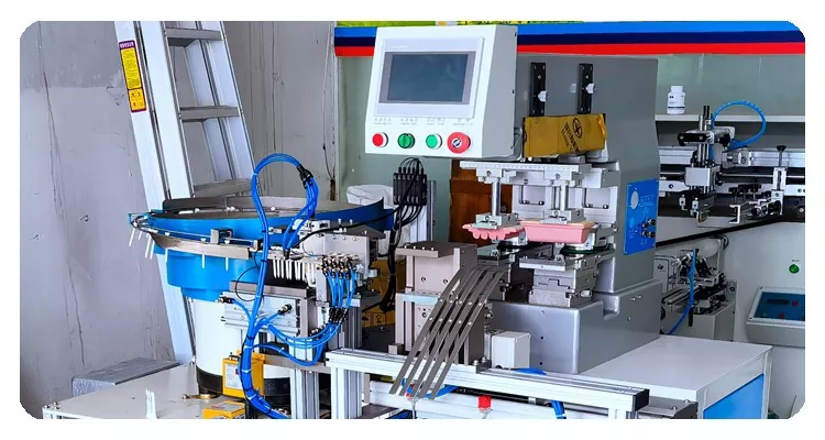 این دستگاه HOYSTAR اتوماتیک 2 رنگ گلف سه راهی چاپ پد مخصوص چاپ بر روی گیره های اندازه طراحی شده است. به عنوان یک ماشین سفارشی غیر استاندارد، در یک چرخه خودکار ویژگی دارد: بارگیری خودکار و به دنبال آن چاپ خودکار و تخلیه خودکار. ، دستگاه مجهز به PLC و کنترل صفحه لمسی برای عملکرد بصری، هر پیشرفت چاپ را می توان روی صفحه لمسی کنترل کرد.
