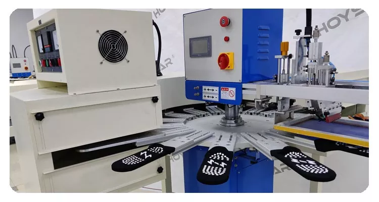 به عنوان تولید کننده و تامین کننده حرفه ای، این دستگاه چاپ صفحه ابریشم جوراب های سایز بزرگ HOYSTAR برای کاربرد در صنعت بافندگی نساجی طراحی شده است. با سرعت تا 1200PCS/Hr مناسب برای چاپ جوراب بدون لغزش، جوراب نوزاد، جوراب بزرگسال، جوراب فوتبال و .... مجهز به میز کار چرخشی و 16 ایستگاه کاری برای بارگیری و تخلیه جوراب بسیار راحت است. کنترل صفحه نمایش لمسی PLC، کار با آن بسیار آسان است. دستگاه مجهز به سیستم خشک کن می تواند سیلیکون و جوهر را به خوبی خشک کند.