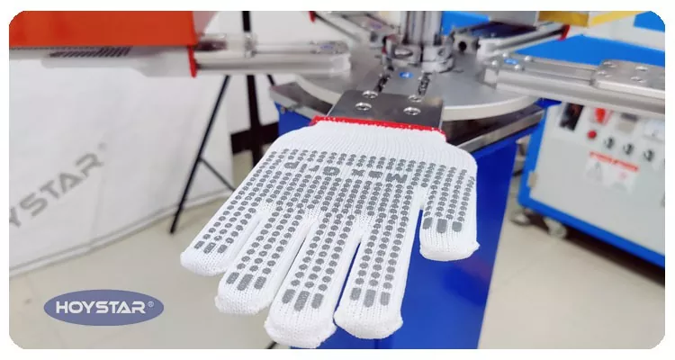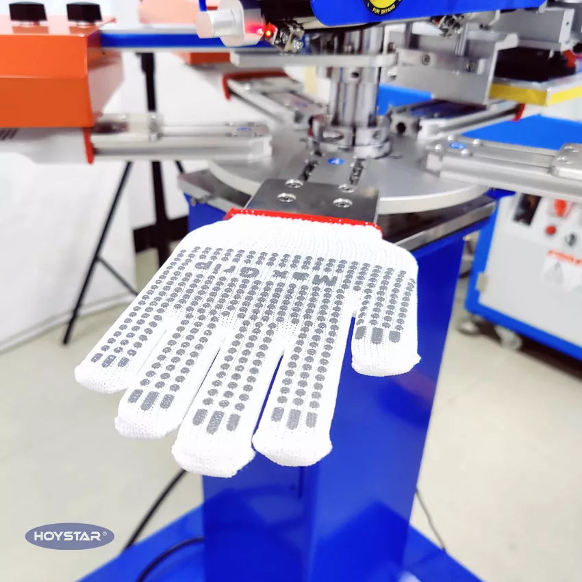 به عنوان تولید کننده حرفه ای در چین، مایلیم دستگاه چاپ روی صفحه دستکش غیر لغزش HOYSTAR را با سرعت بالا در اختیار شما قرار دهیم. دستگاه های ما از کنترل صفحه نمایش لمسی و PLC استفاده می کنند و عمدتاً برای چاپ انواع دستکش استفاده می شوند. این دستگاه می تواند روی دستکش های نخی، دستکش های بافتنی و غیره چاپ کند. دستگاه مجهز به اجاق خشک کن که می تواند سیلیکون و جوهر را به خوبی خشک کند.