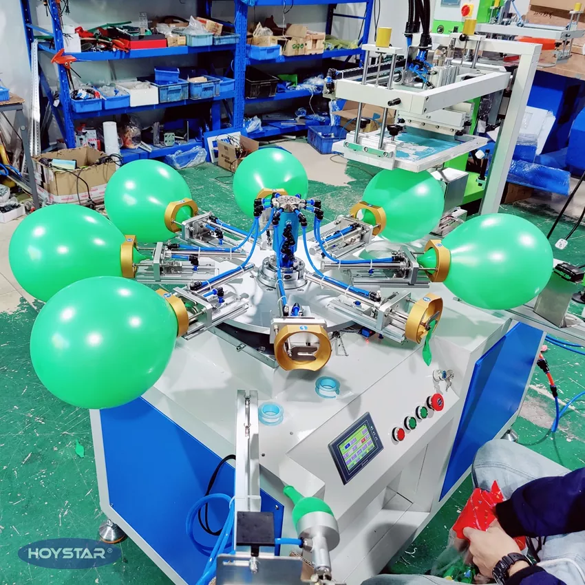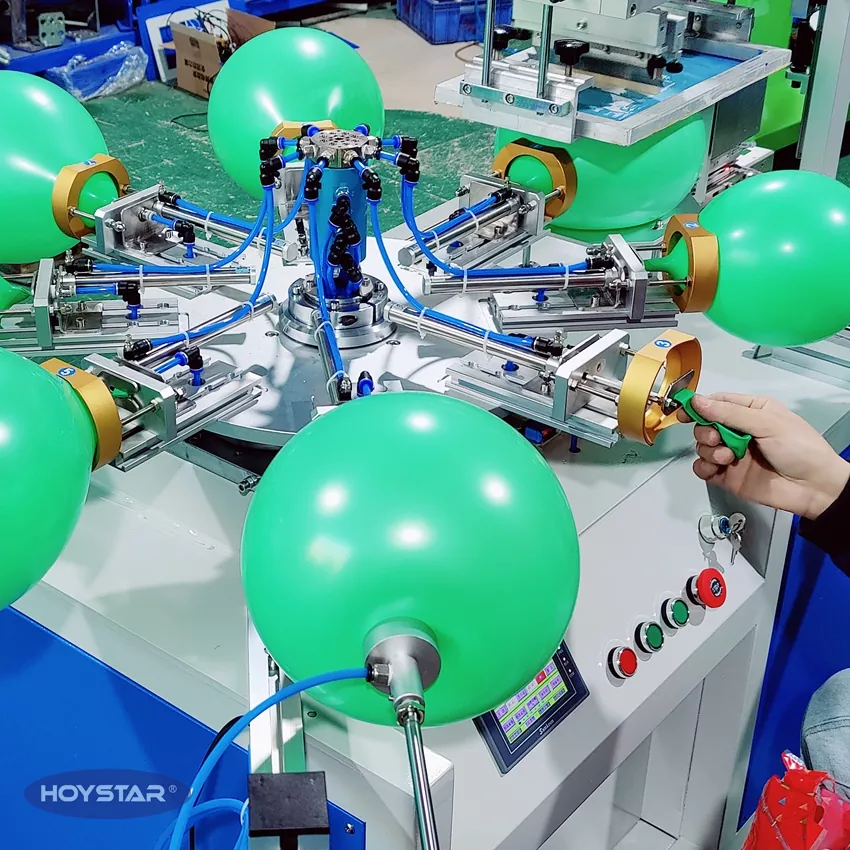 HOYSTAR یک تولید کننده و تامین کننده قابل اعتماد در چین است. این دستگاه چاپ صفحه بالون تک رنگ HOYSTAR برای چاپ روی بادکنک های لاتکس طراحی شده است. مجهز به میز کار دوار، دمیدن خودکار، چرخش خودکار، خشک کردن خودکار، عملکردهای تخلیه خودکار. کنترل صفحه نمایش لمسی PLC، رابط کاربر پسند برای عملکرد ایمن و بصری. این دستگاه ترکیبی از سرعت، دقت و سهولت استفاده است.