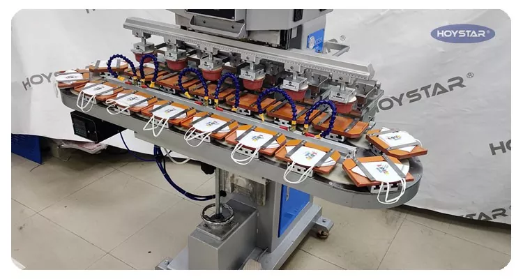 به عنوان تولید کننده حرفه ای در چین، ما می خواهیم چاپگر HOYSTAR شش رنگی با کارایی بالا را با میز کار نقاله به شما ارائه دهیم. این دستگاه چاپ مداوم شش رنگ را برای محصولات با ثبت یک رنگ در یک چرخه امکان پذیر می کند. این دستگاه از سیستم انتقال صفحه گردان چرخشی استفاده می کند که انتقال مداوم و روان محصول را در طول فرآیند چاپ امکان پذیر می کند و توانایی تکمیل چاپ کامل 6 رنگ را تنها در یک چرخه چرخشی می دهد. در مقایسه با چاپگرهای پد شاتل، سرعت آن بسیار سریع است.